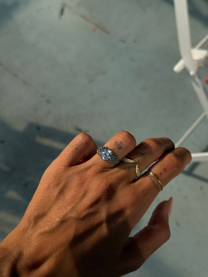 Meraviglioso anello in argento 925 che abbraccia il dito tempestato di micro zirconi bianchi che lo rendono incredibilmente luminoso. Regolabile