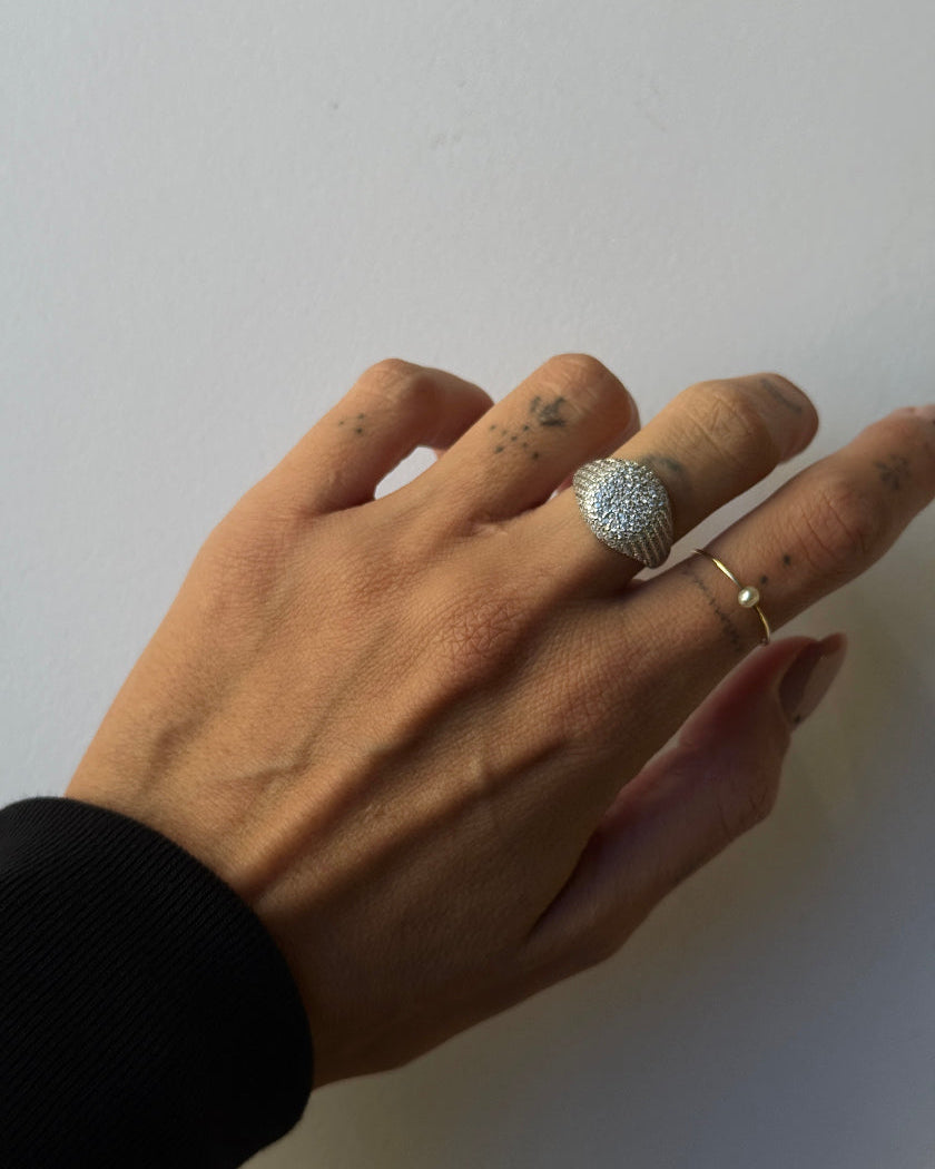 Bellissimo chevalier in argento 925 rodiato con pavè di zirconi luminosissimi.
