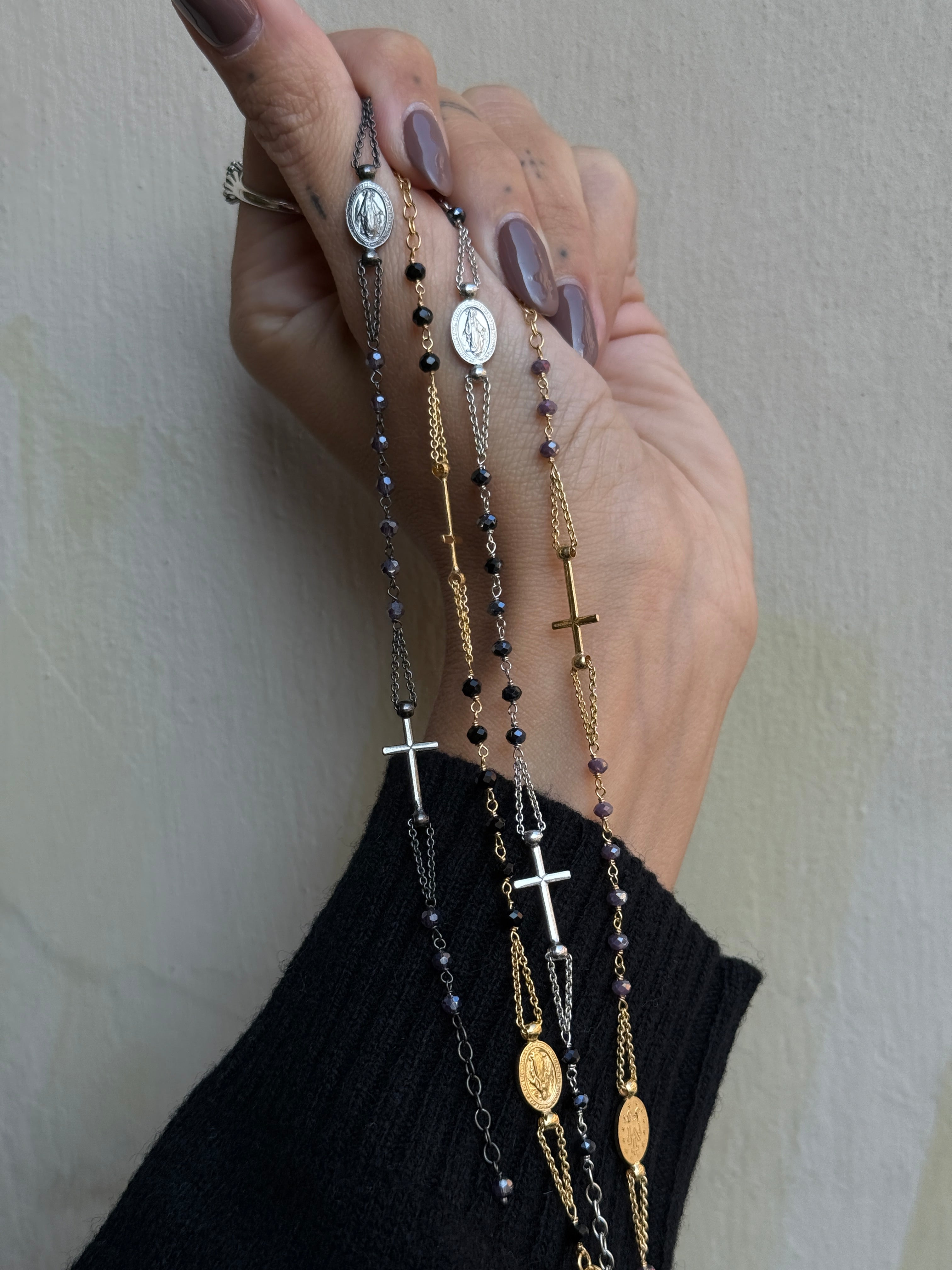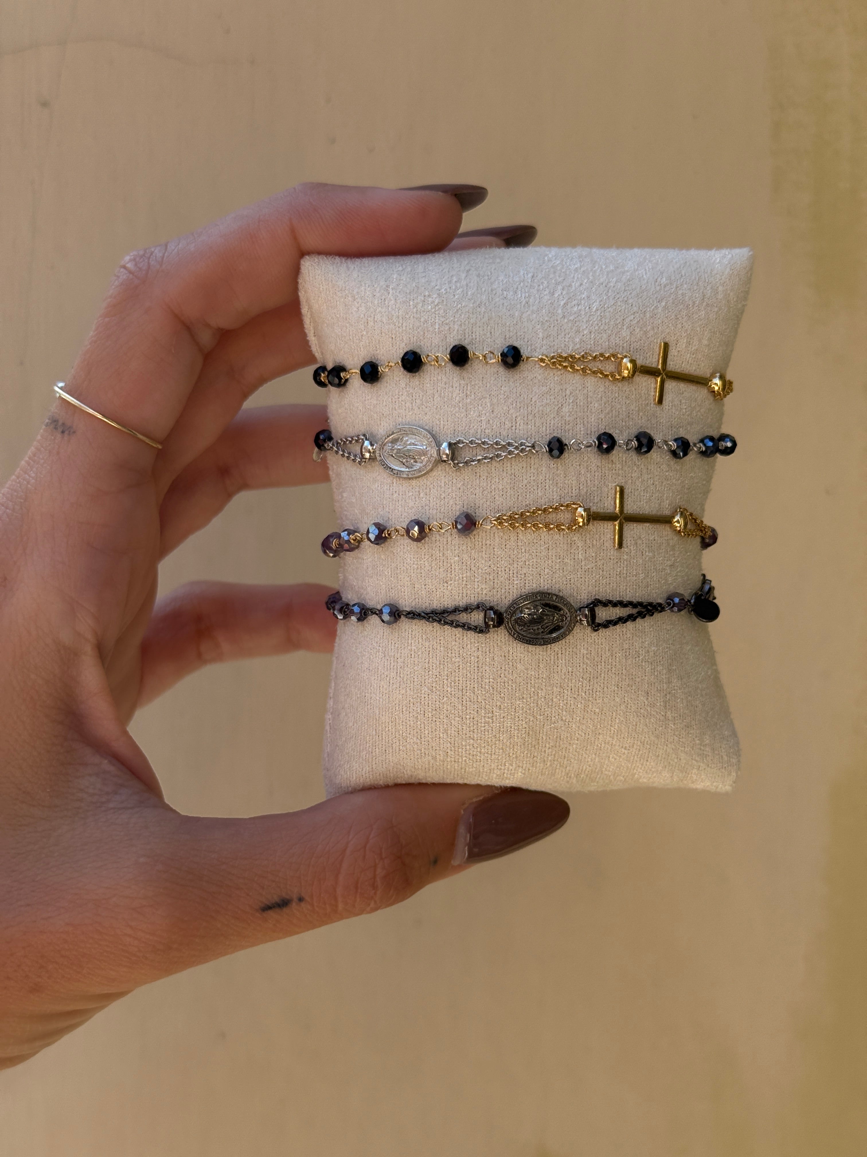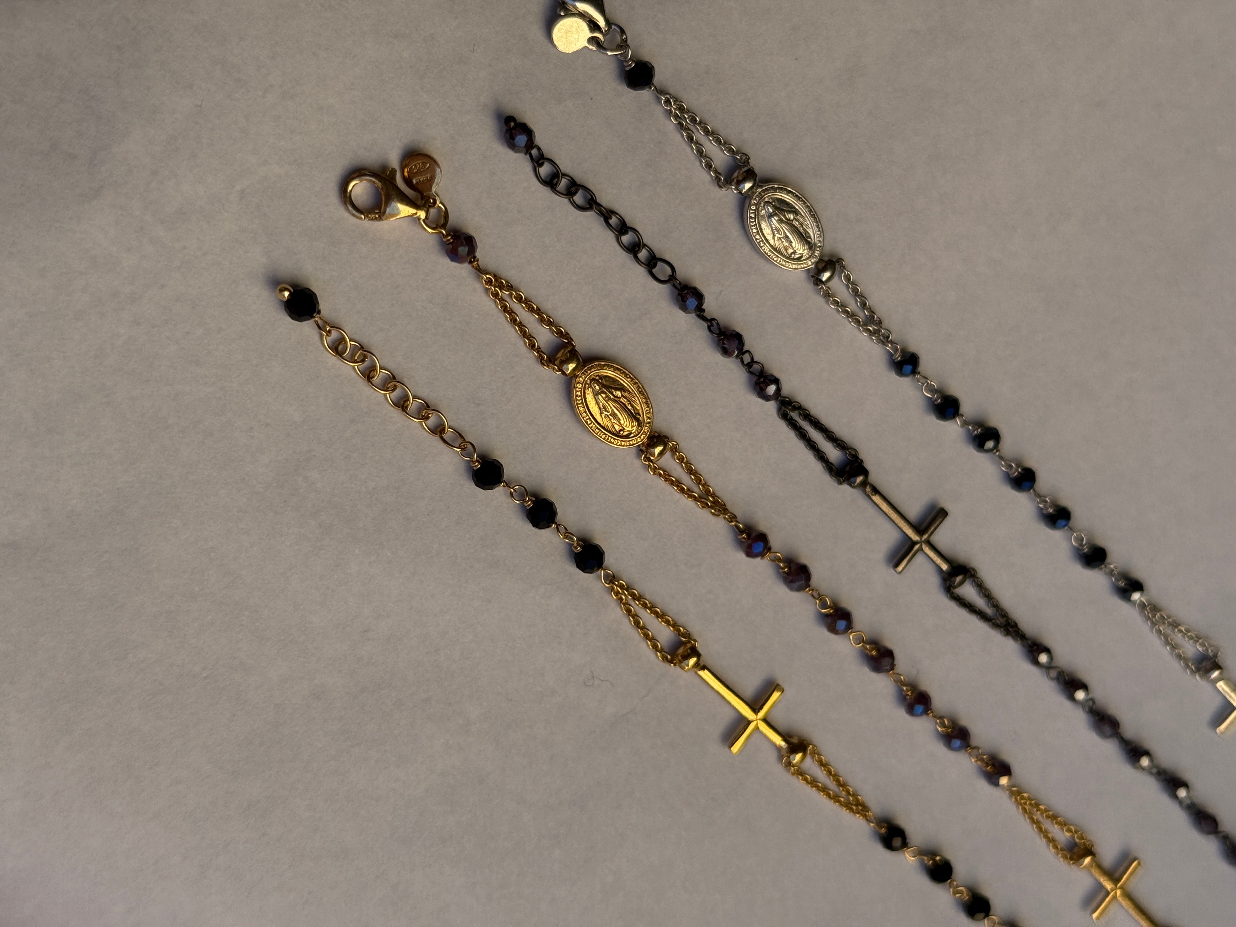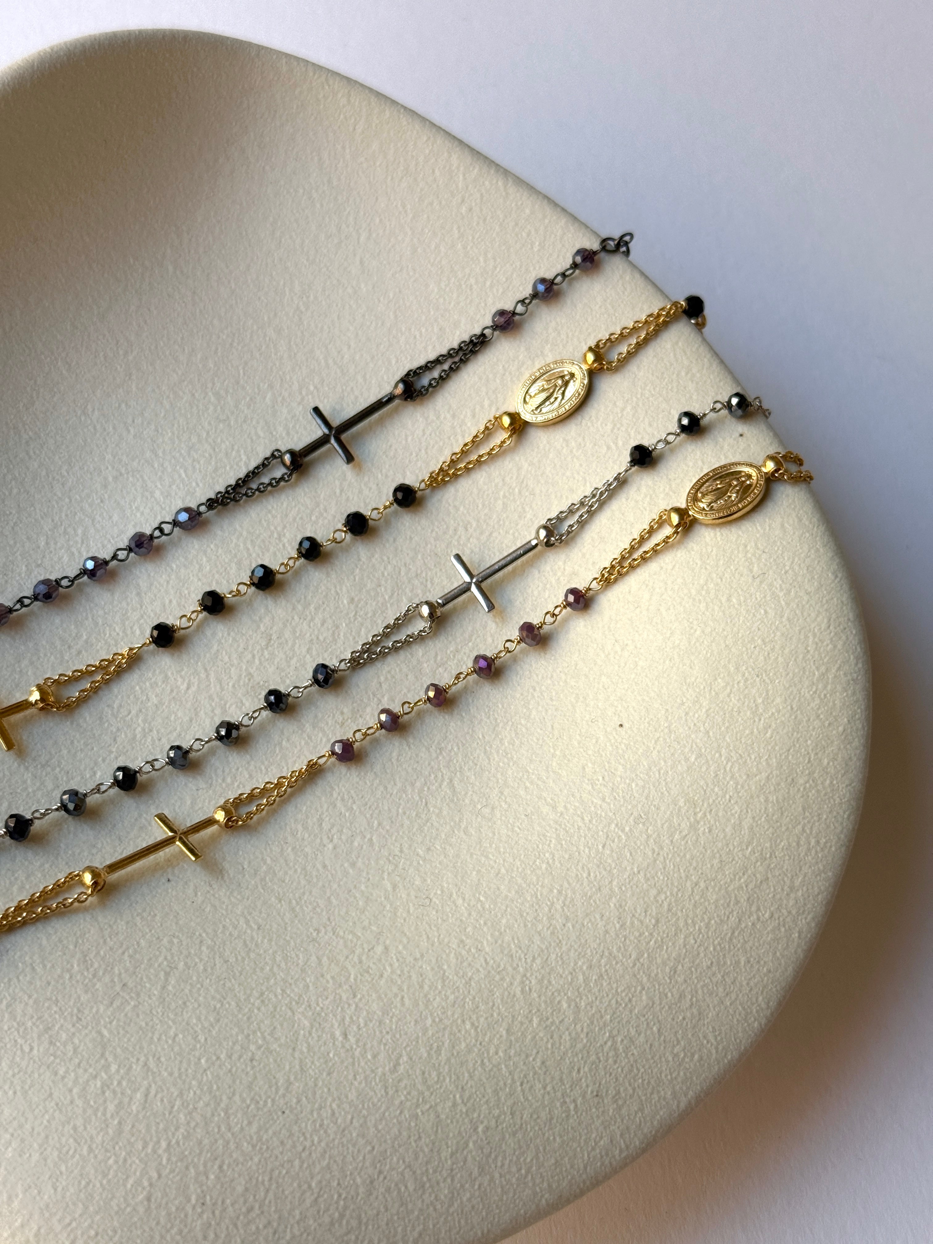 Bracciale in argento 925 bianco o placcato oro 18kt con con zirconi, catene e croci