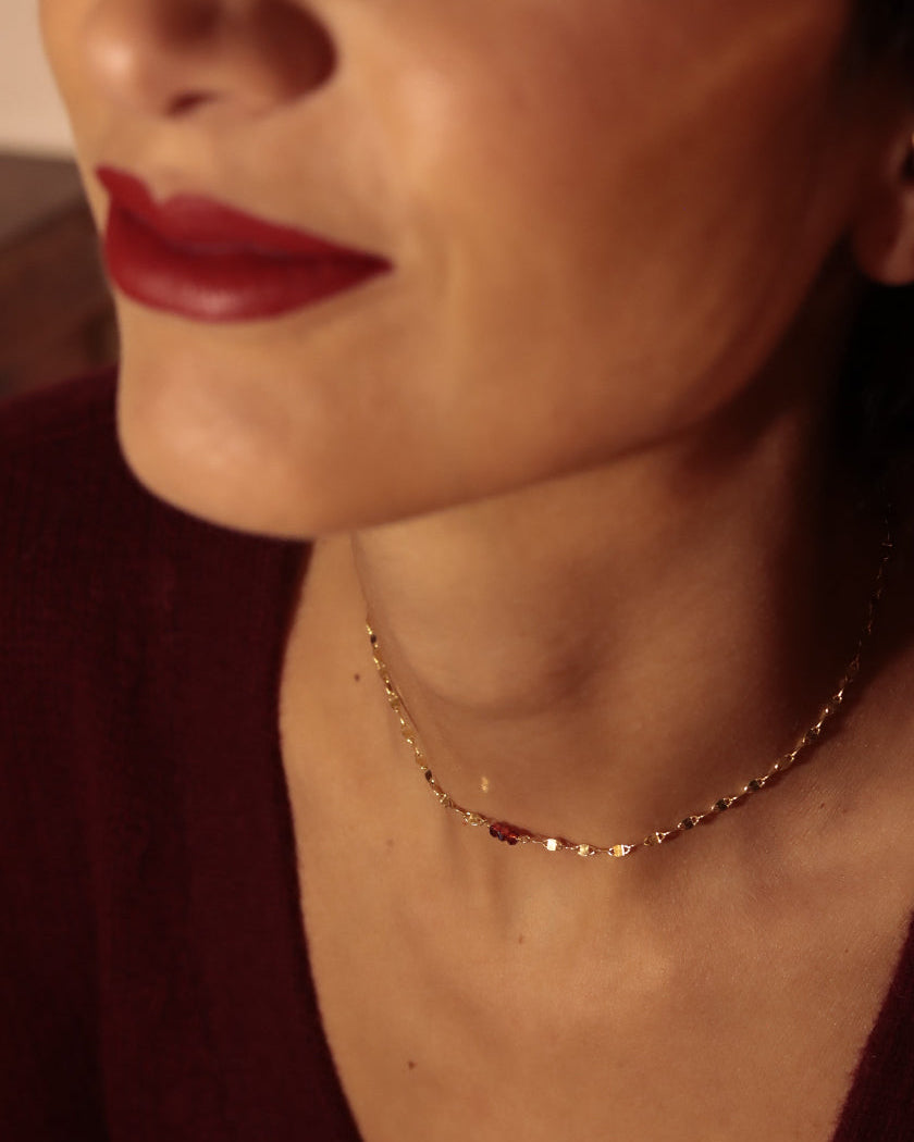 Collana choker in argento 025 bianco o placcato oro 18kt impreziosita da piccoli cristalli rossi