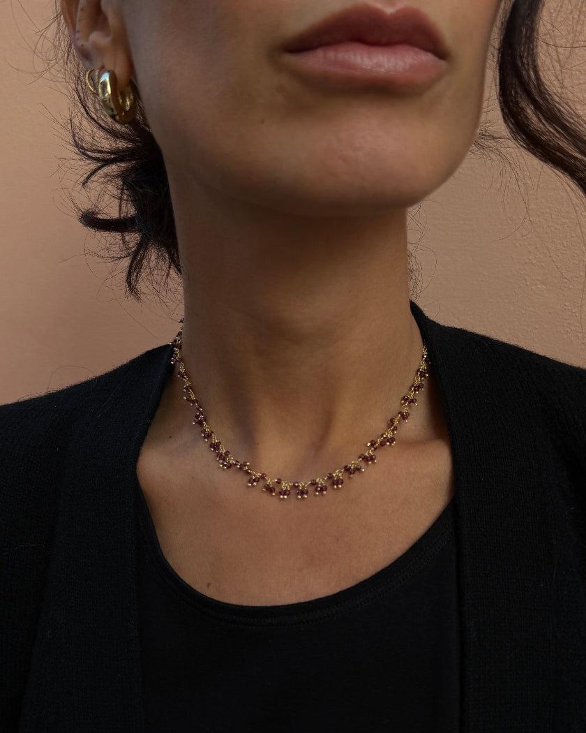 Choker in argento 925 placcato oro 18kt con pietra pirite pendente e in linea.