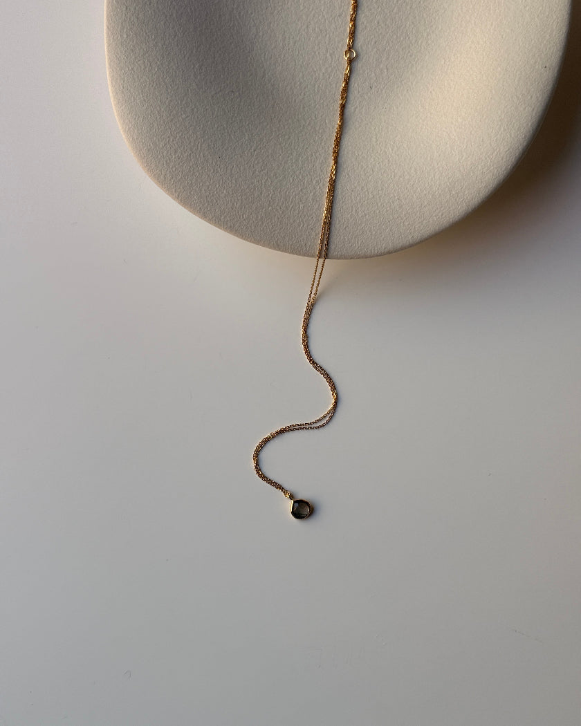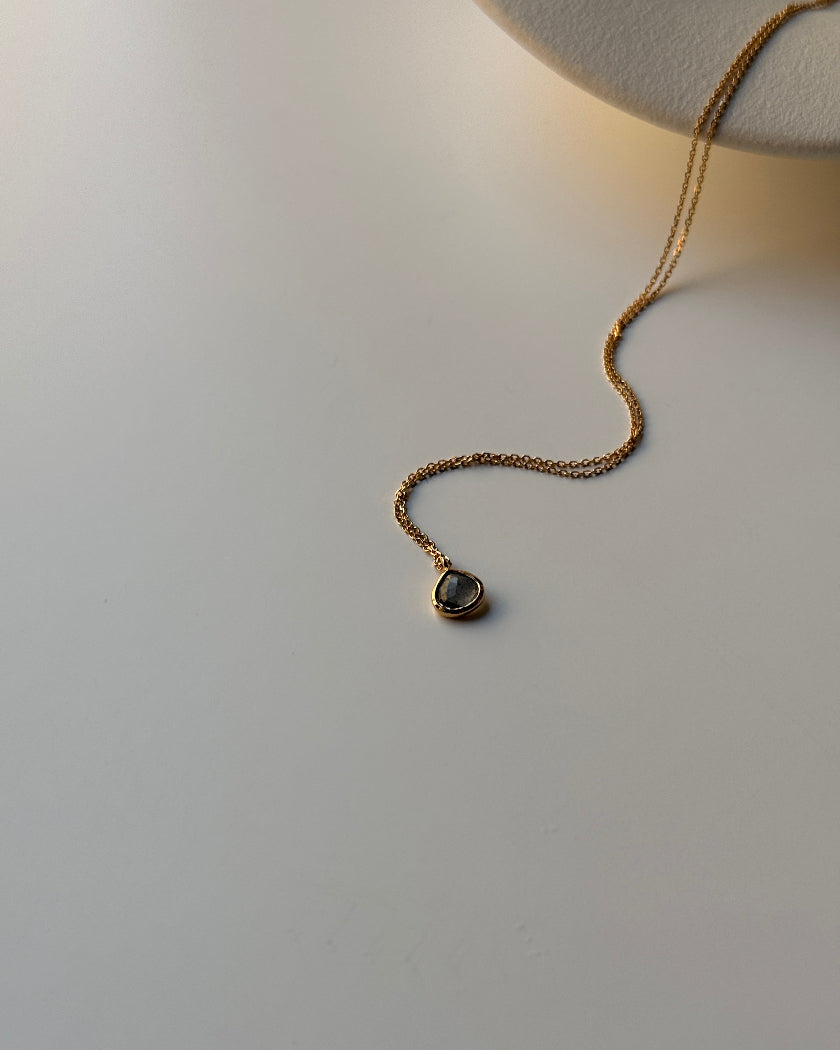 Collana realizzata con catena sottile luminosa e pendente a goccia con labradorite naturale dai riflessi intensi.