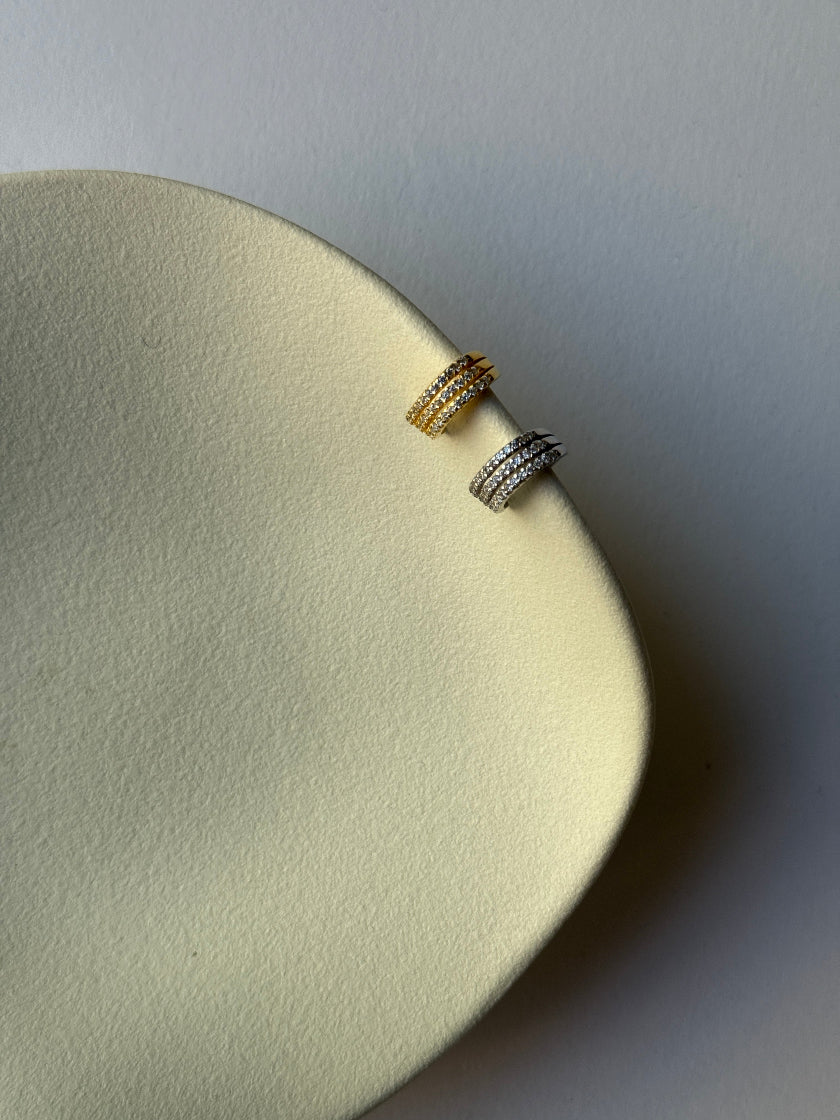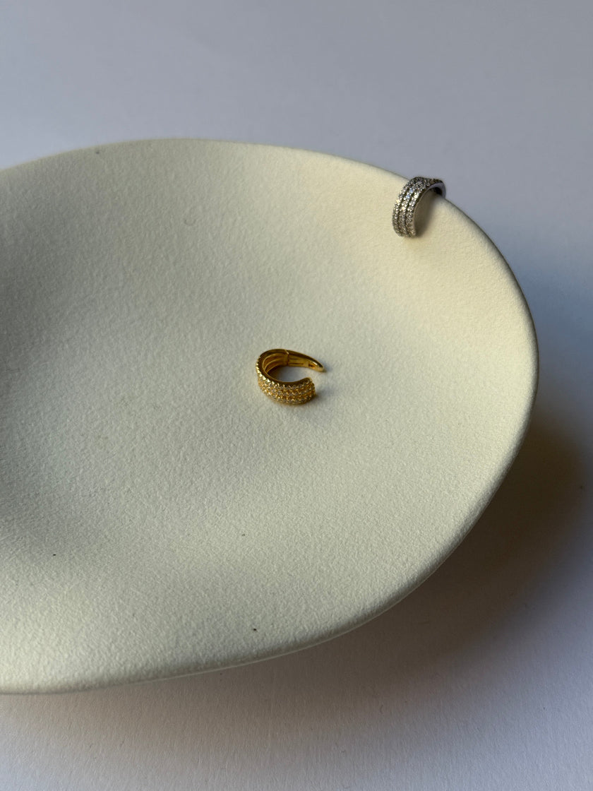 Earcuff in argento 925 galvanizzato oro giallo con tripla fascia di zirconi bianchi.