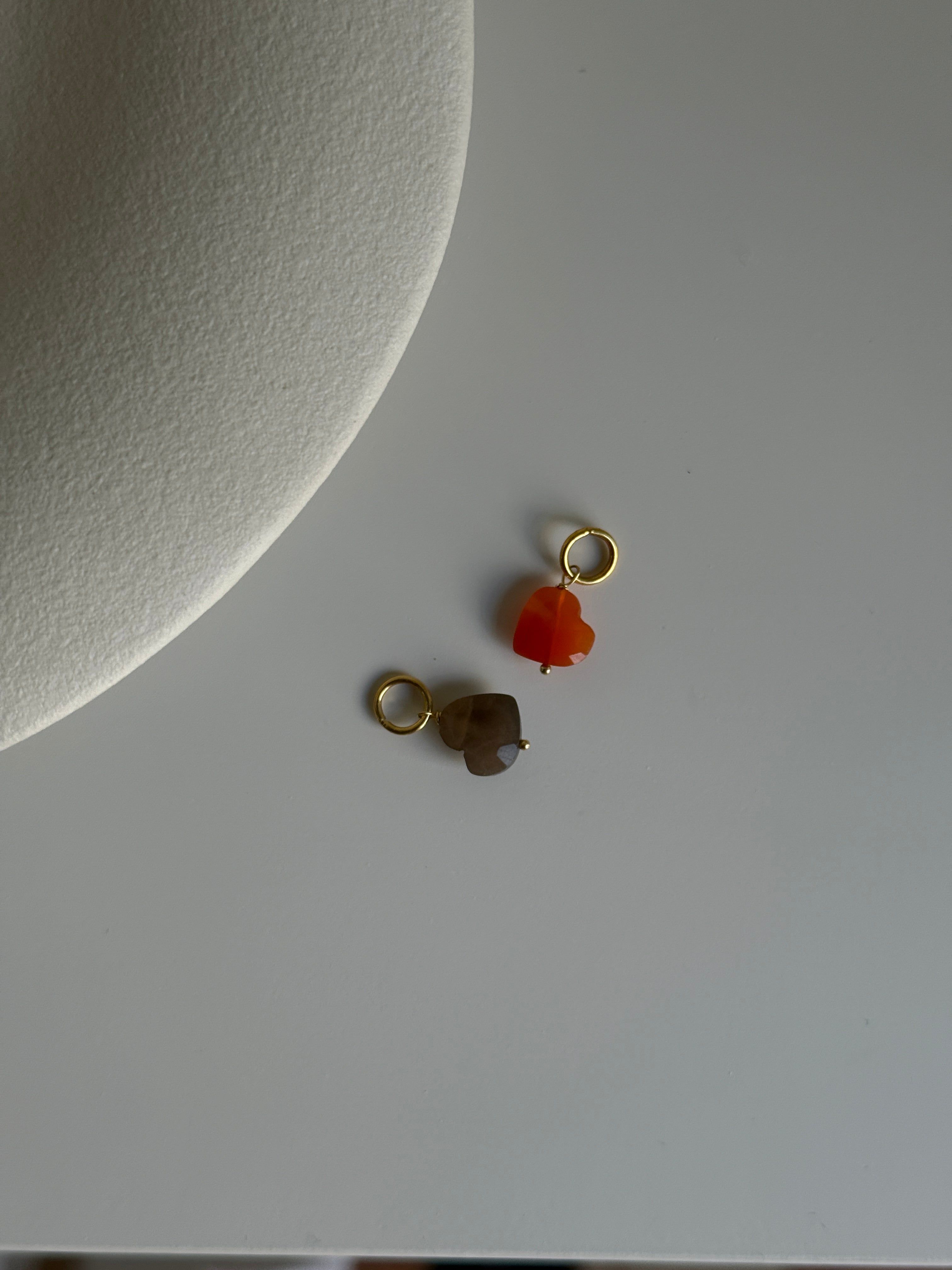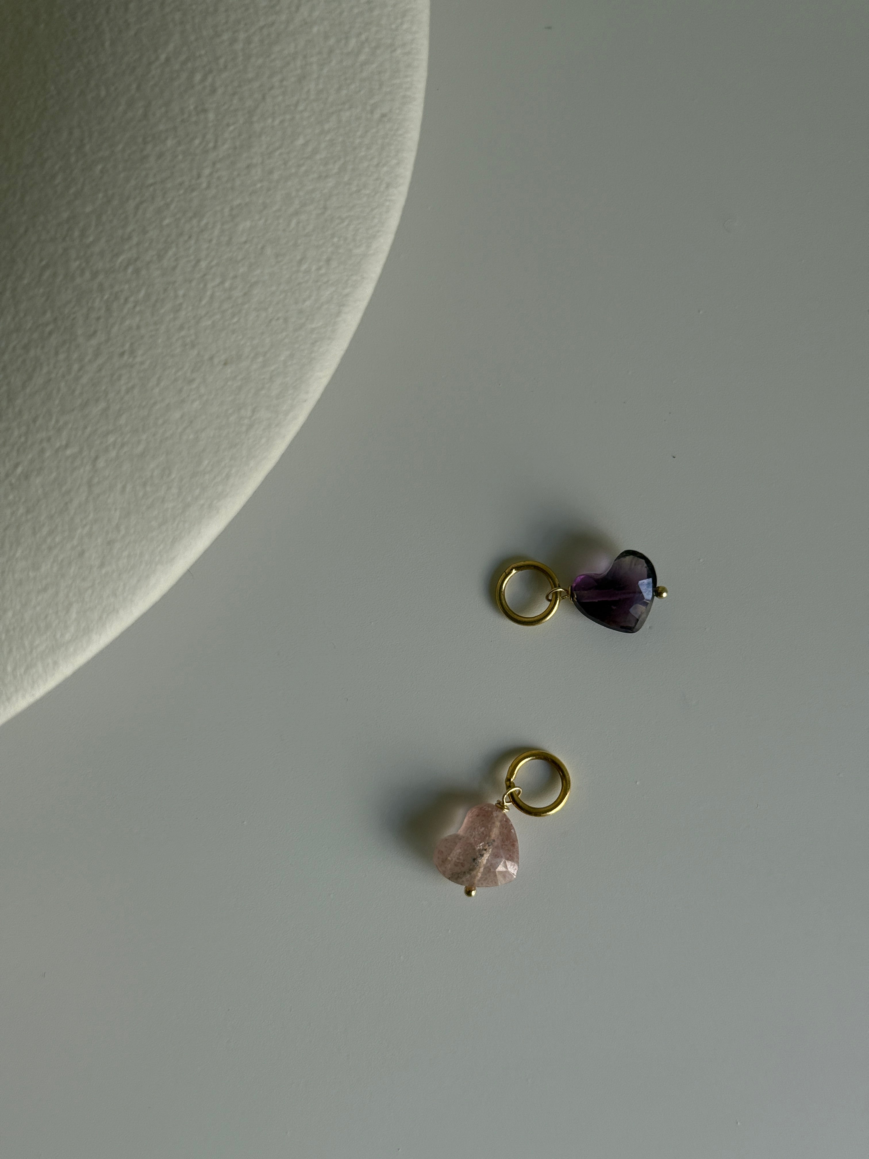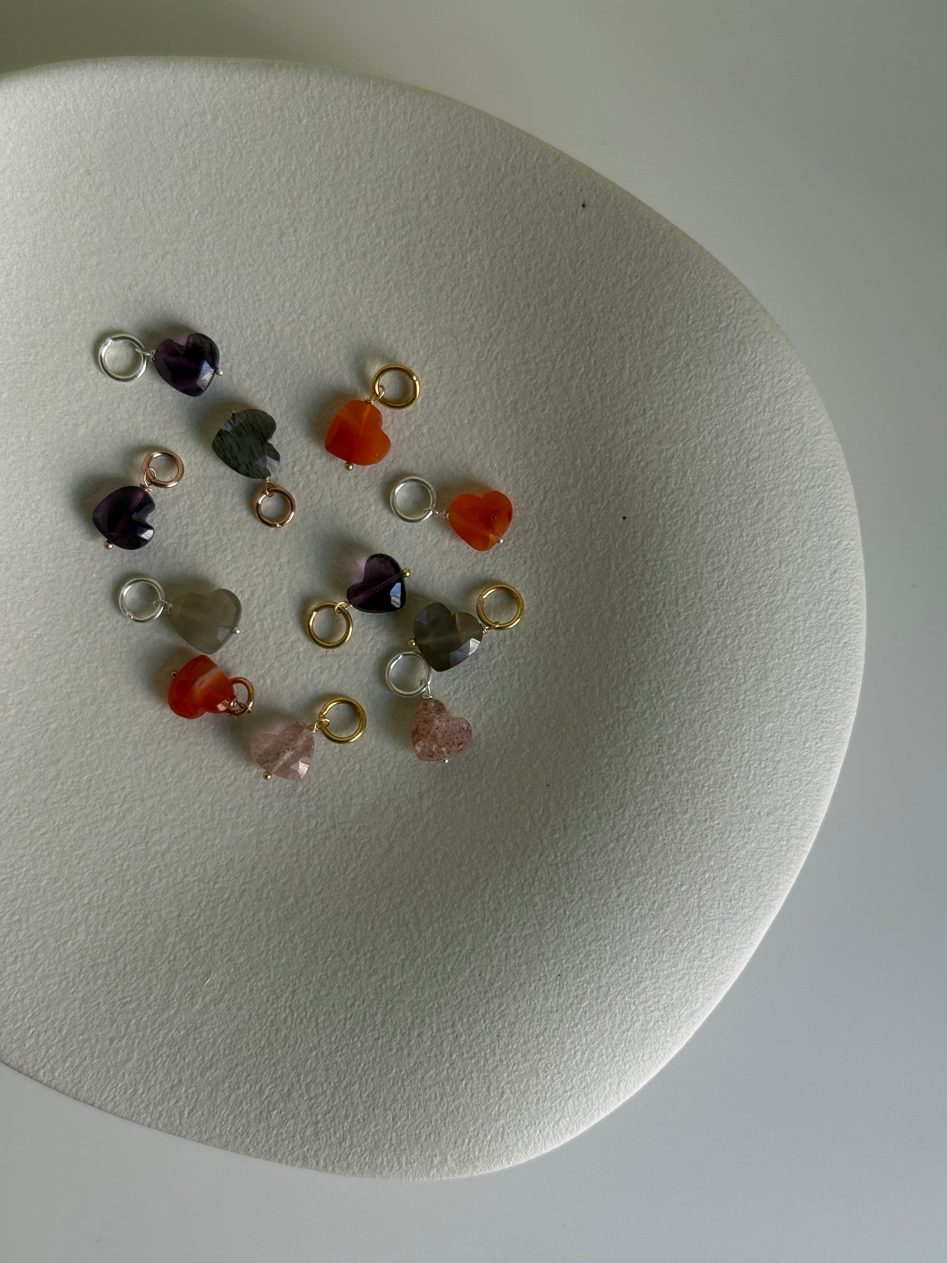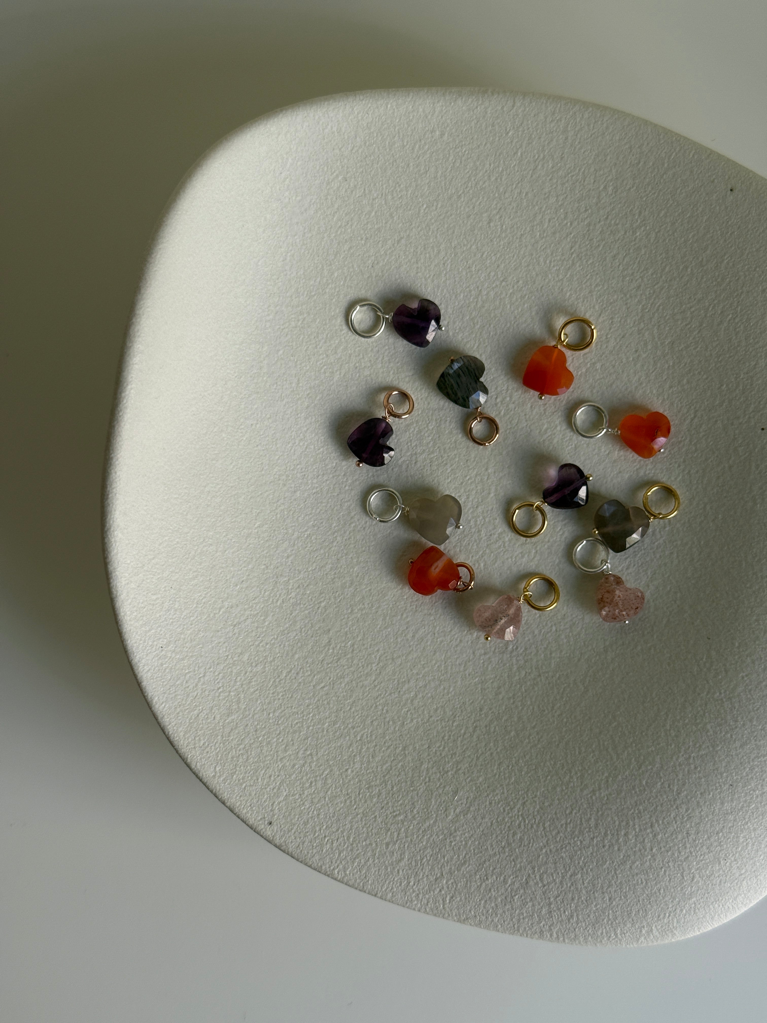 Charm con pietre naturali semipreziose a forma di cuore finito con anellino in argento 925 bianco o placcato oro giallo 18kt
