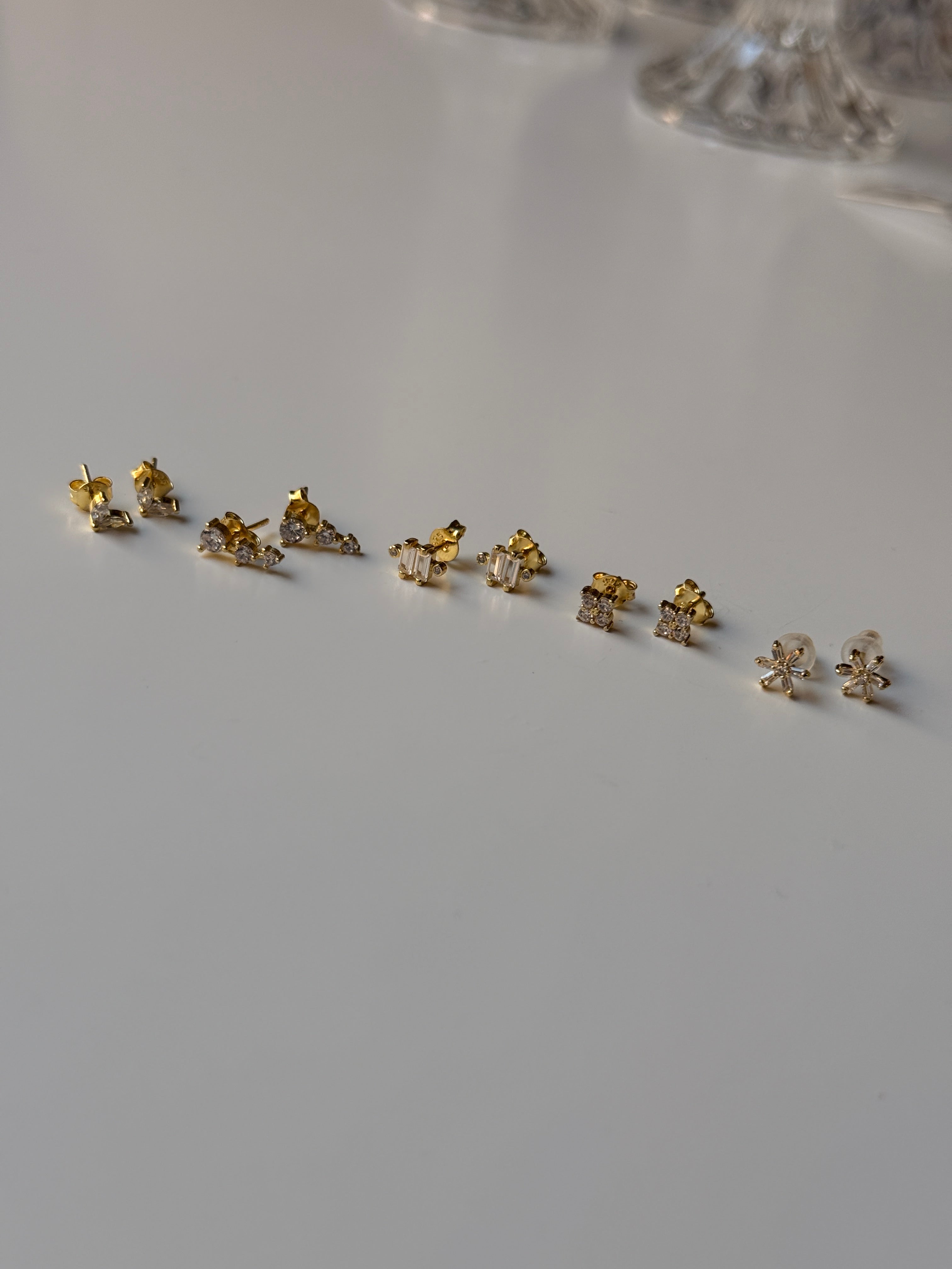 Micro orecchini a lobo in argento 925 con zirconi bianchi.