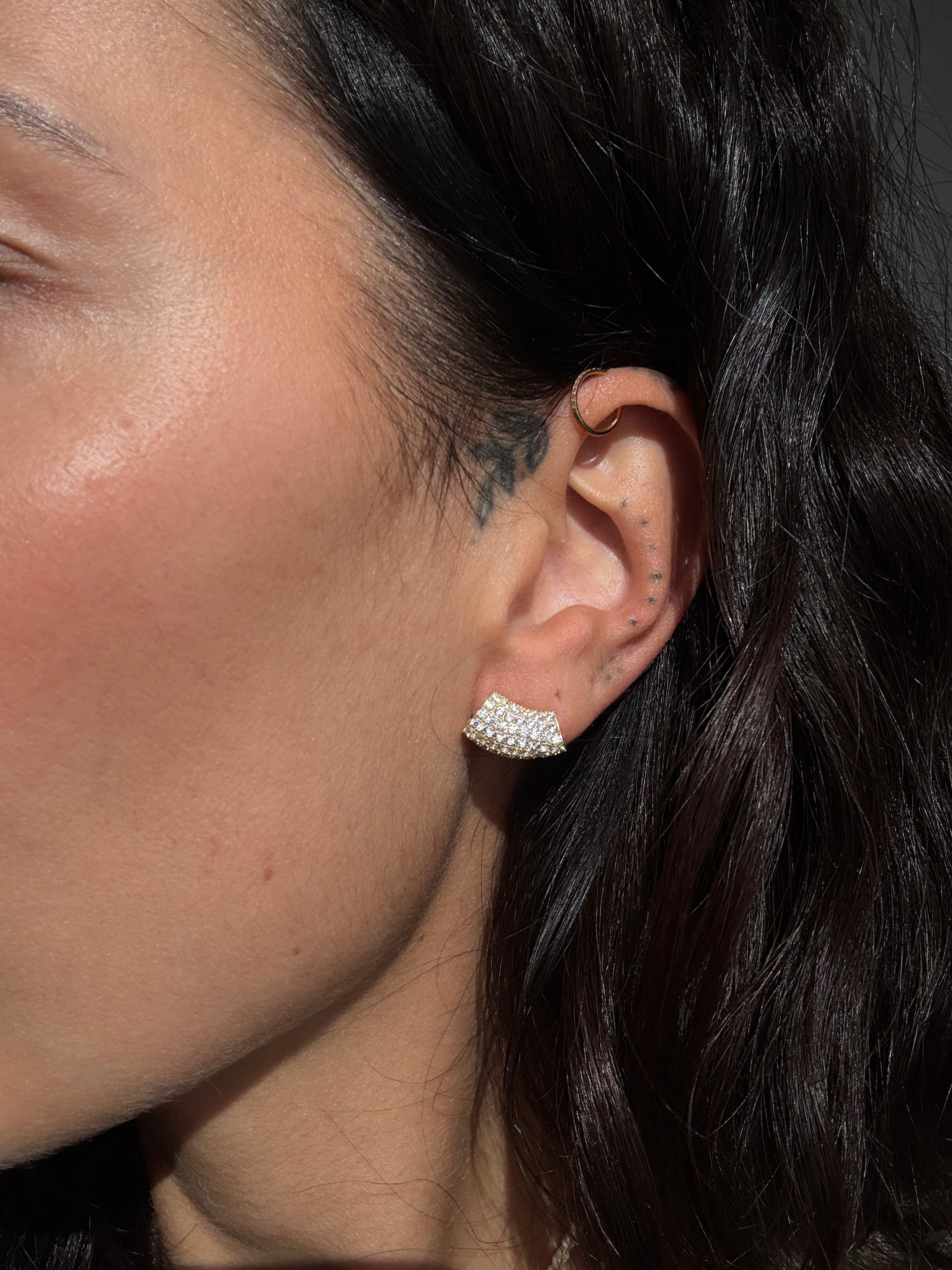 Orecchini che avvolgono il lobo impreziositi di un pavè di zirconi bianchi in argento 925 bianco o placcato oro 18kt