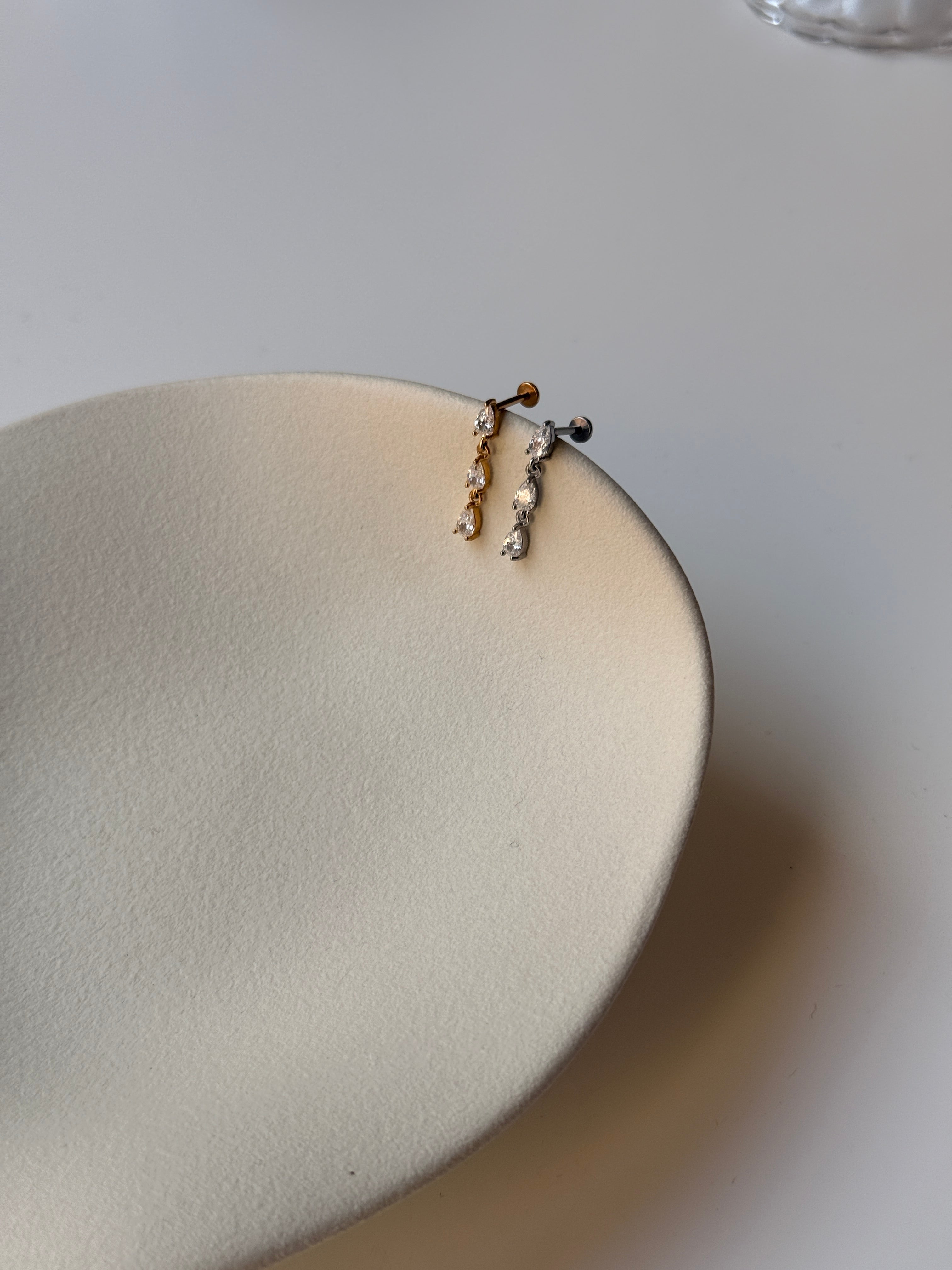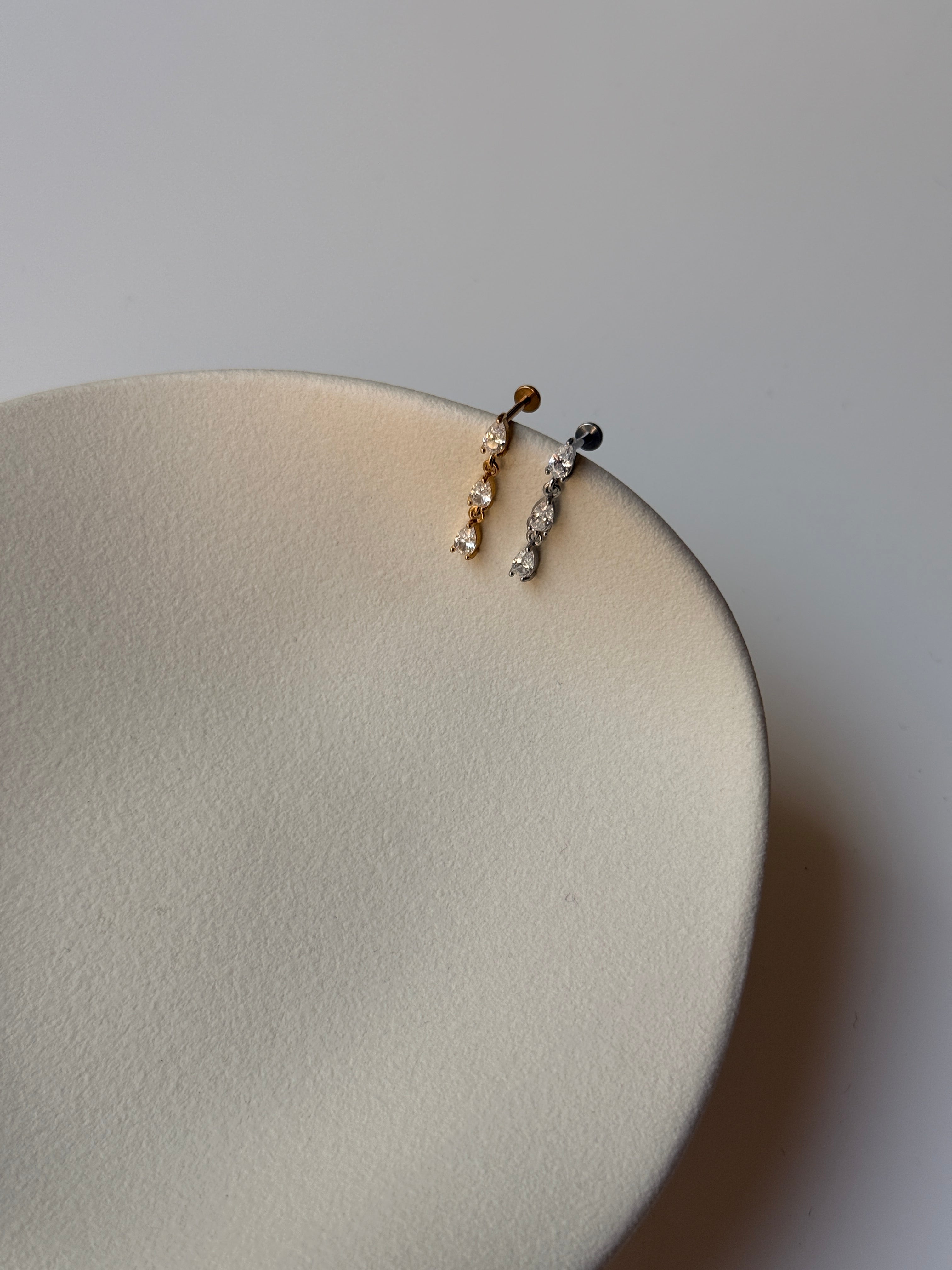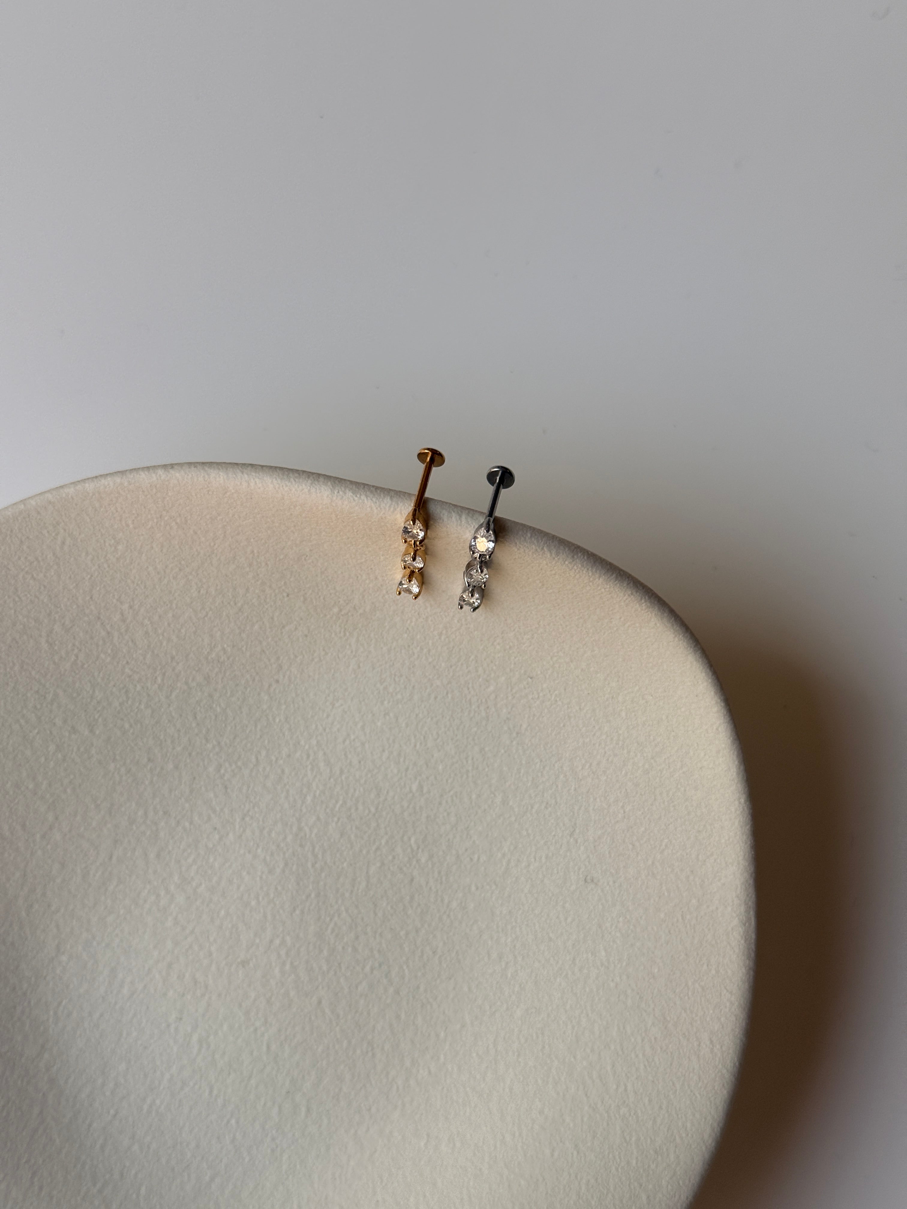 Piercing labret in acciaio chirurgico anallergico con chiusura a vite. Acciaio e zirconi bianchi.