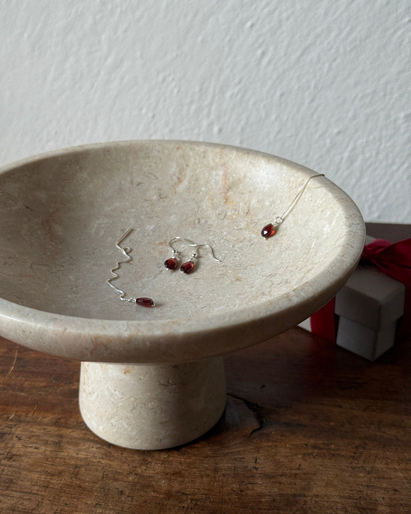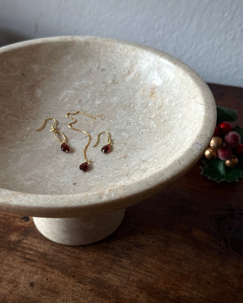 Diversi modelli di orecchini luminosi per diverse combinazioni in argento 925 bianco o placcato oro 18kt con una goccia di granato pendente