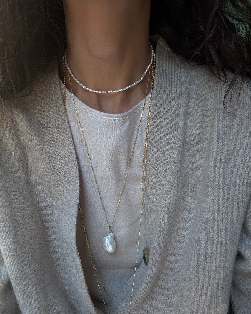 Choker di perle di fiume naturali con sfera diamantata in oro 18kt al centro