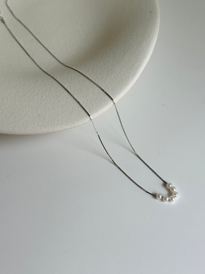 Catena in argento 925 bianco o placcato oro 18kt realizzata con micro maglia veneziana e piccole perle di fiume