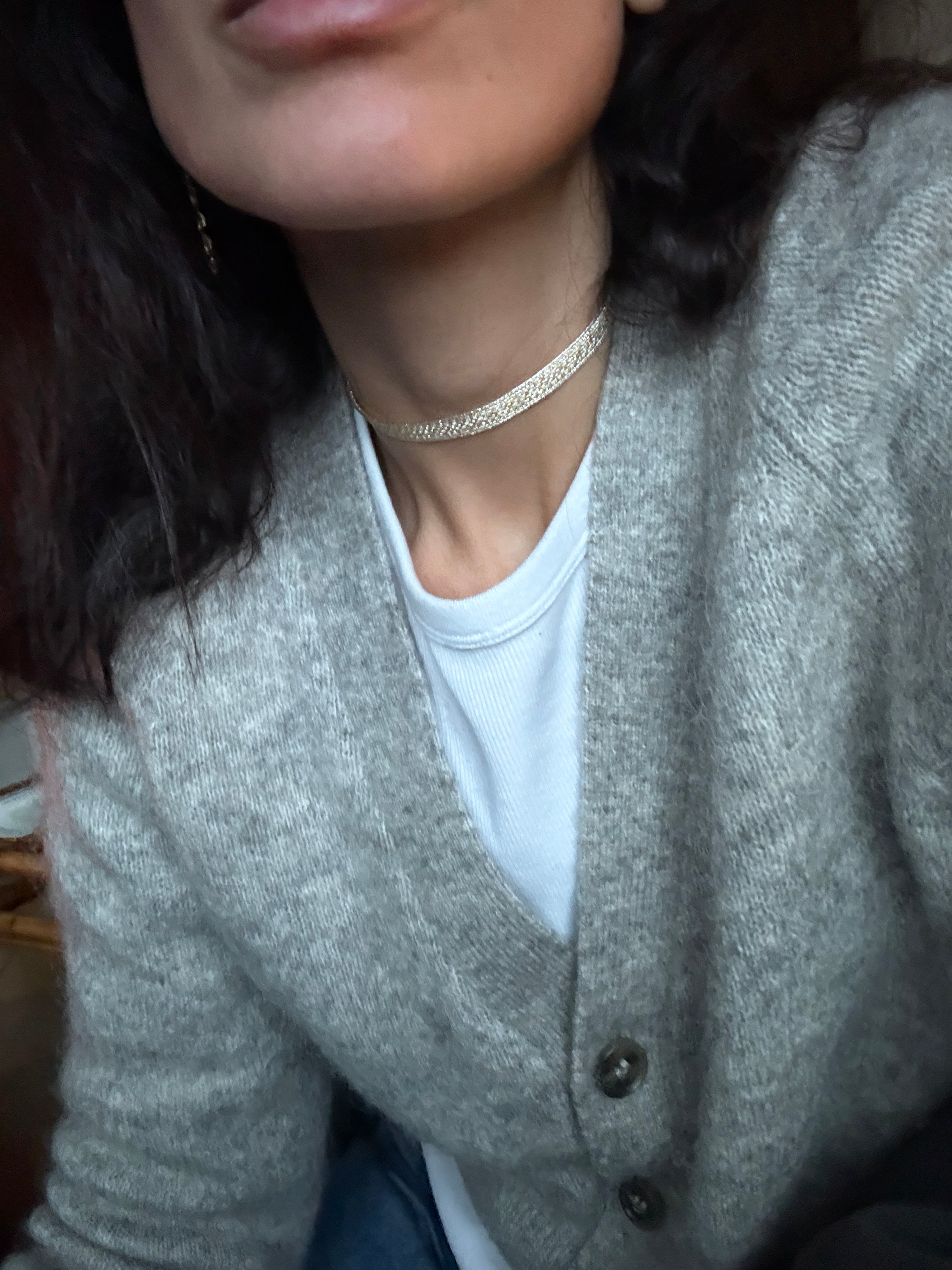 Un gioiello che fonde heritage artigianale e design contemporaneo, perfetto da indossare a pelle per valorizzare il collo o sopra tessuti leggeri per un look boho sofisticato.