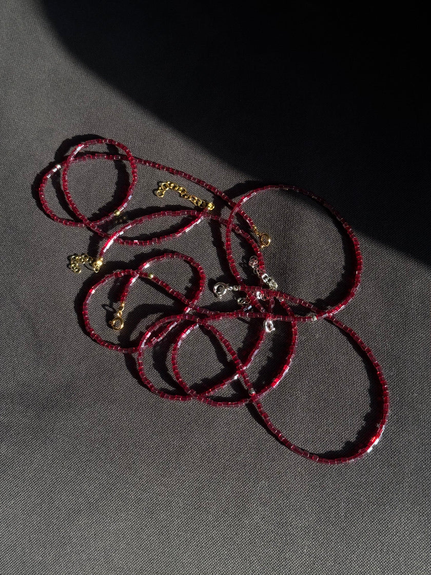 Choker con cristalli di vetro a tubetto color vinaccia e finiture in argento 925 bianco o placcato oro 18kt